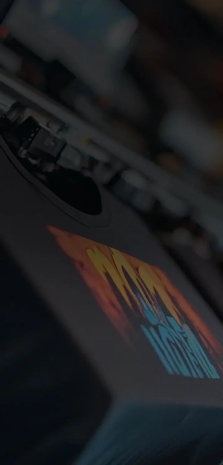 DTG Printing is a form of digital printing or print on demand clothing that applies water-based ink directly into the fabric using specialized inkjet printers. DTG Printing allows for highly detailed, full-colour designs with smooth gradients and complex patterns.